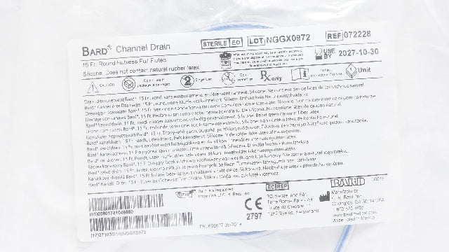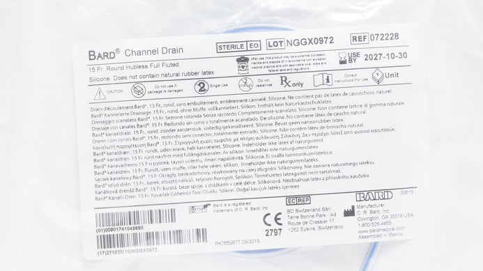 - Bard 072228 Channel Drain Round Hubless Full Fluted, Silicone 15Fr