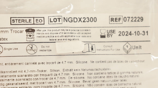 Bard 072229 Channel Drain Silicone 15Fr Round Hubless Full Fluted w/4.7mmTrocar
