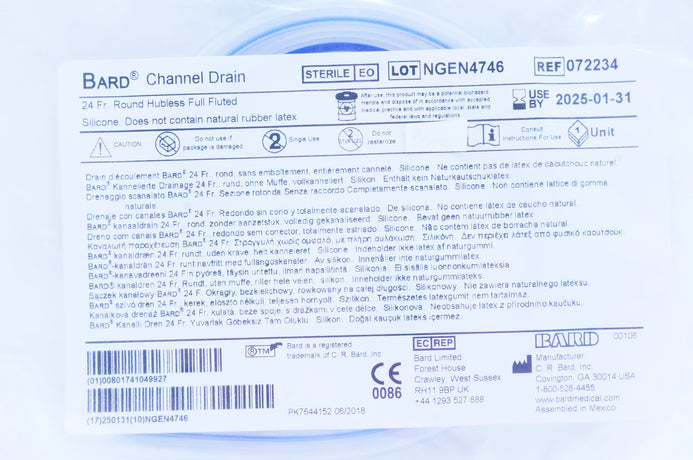 Bard 072234 Channel Drain 24 Fr. Round Hubless Full Fluted Silicone