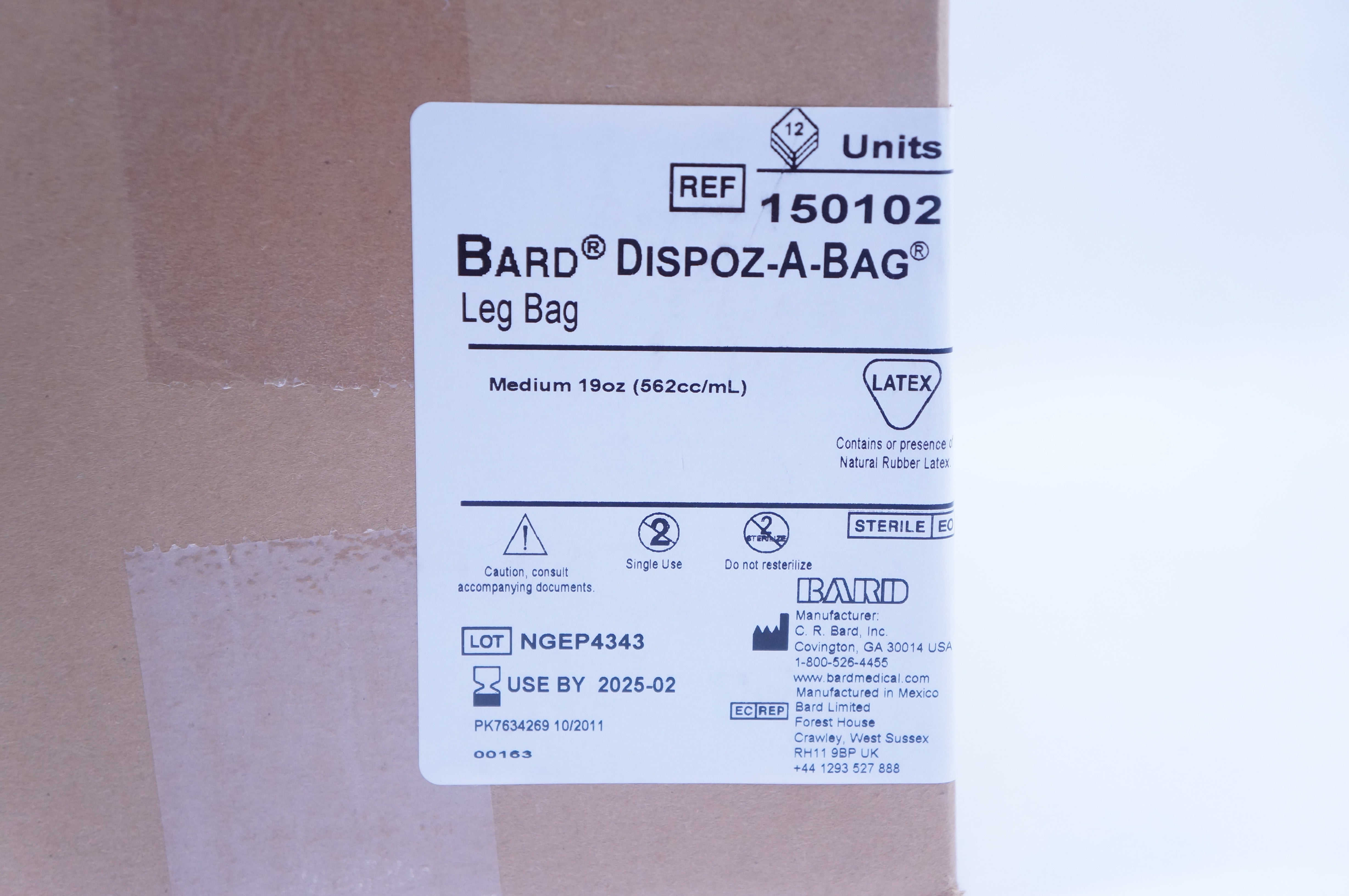 Bard 150102 Dispoz-A-Bag R Leg Bag Medium 19oz, Latex - Case of 12