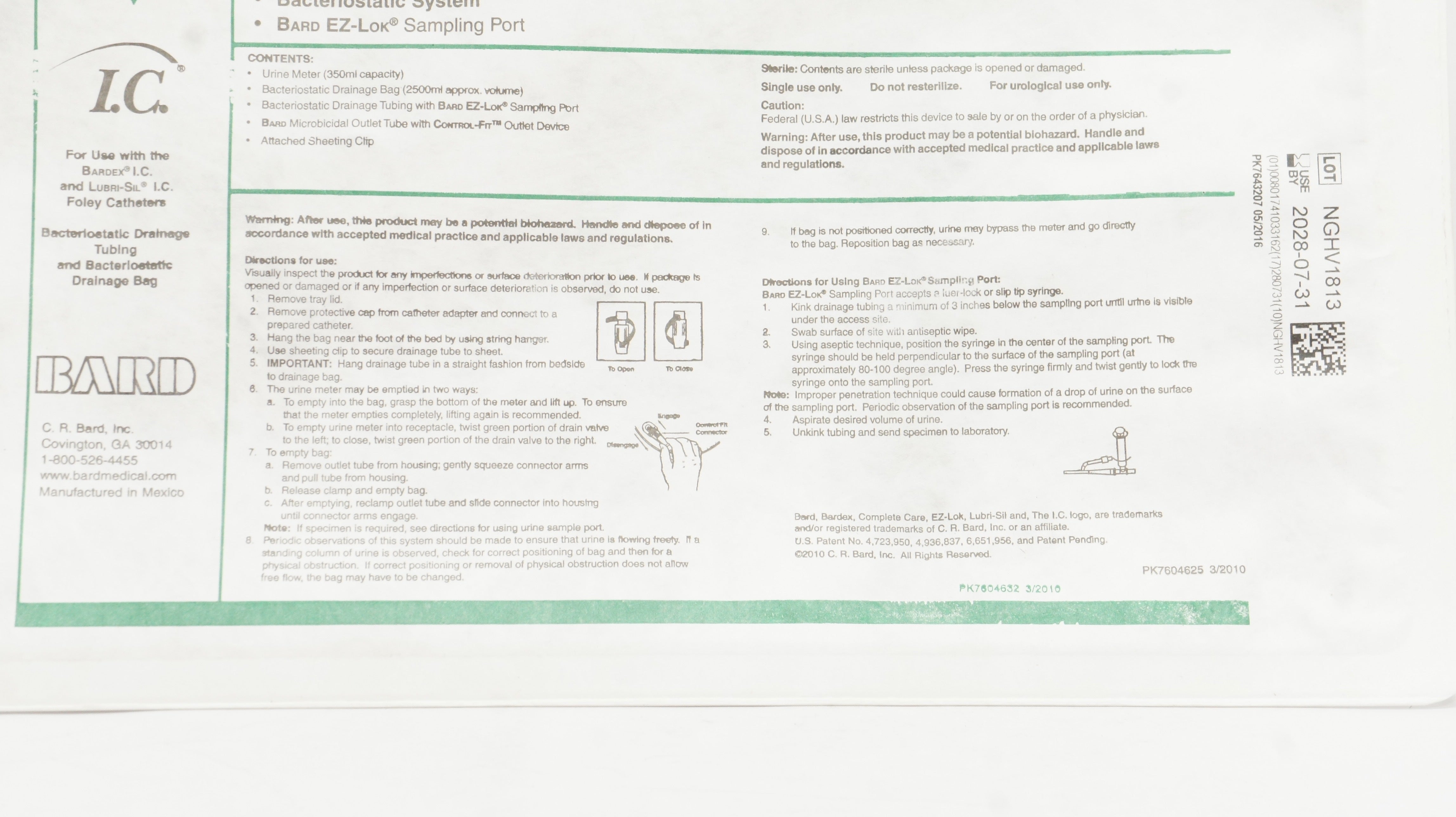 Bacteriostatic Tubing with Bard EZ-Lok Sampling Port
