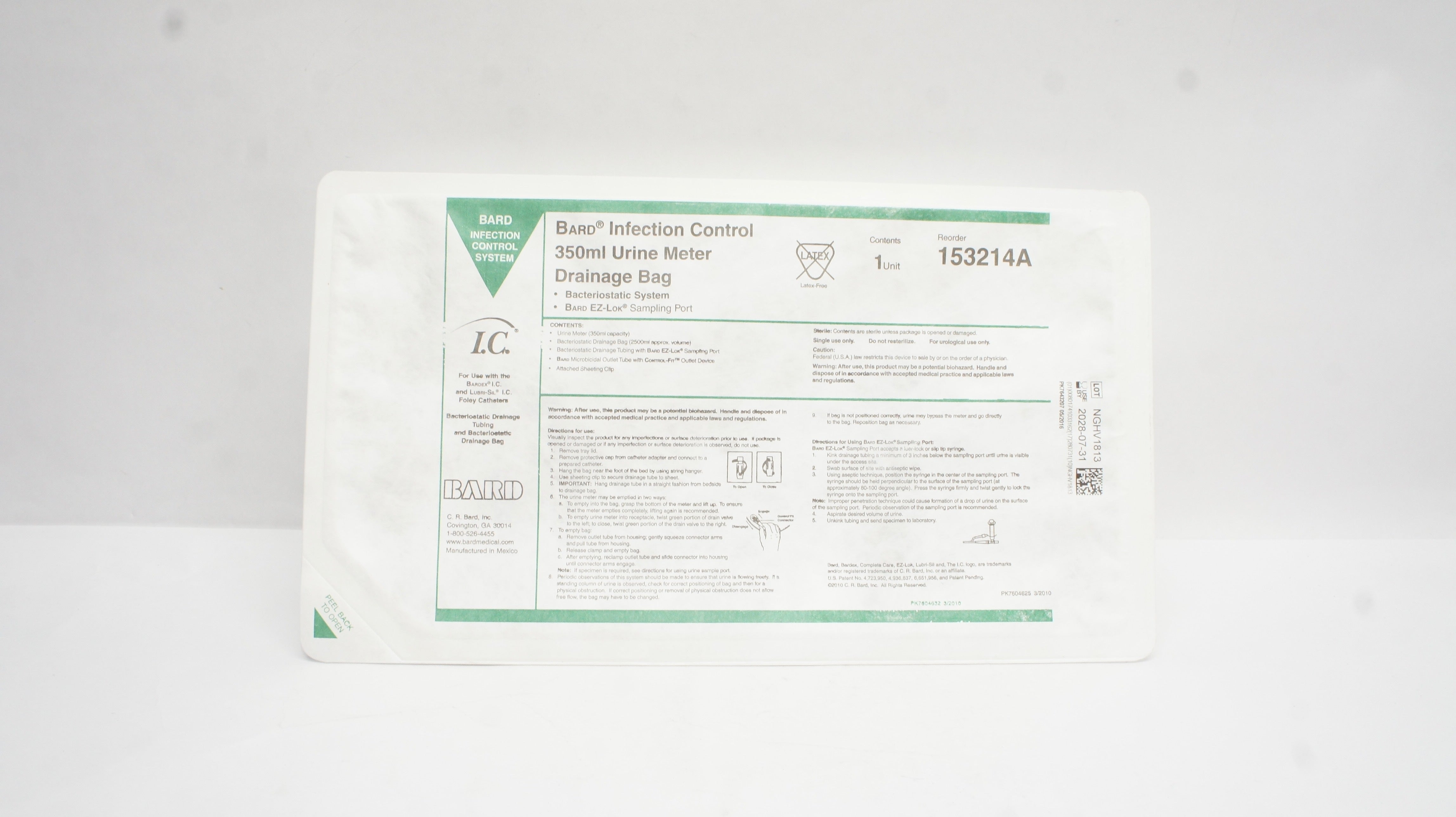 Bard 153214A Infection Control Urine Meter Drainage Bag 350ml