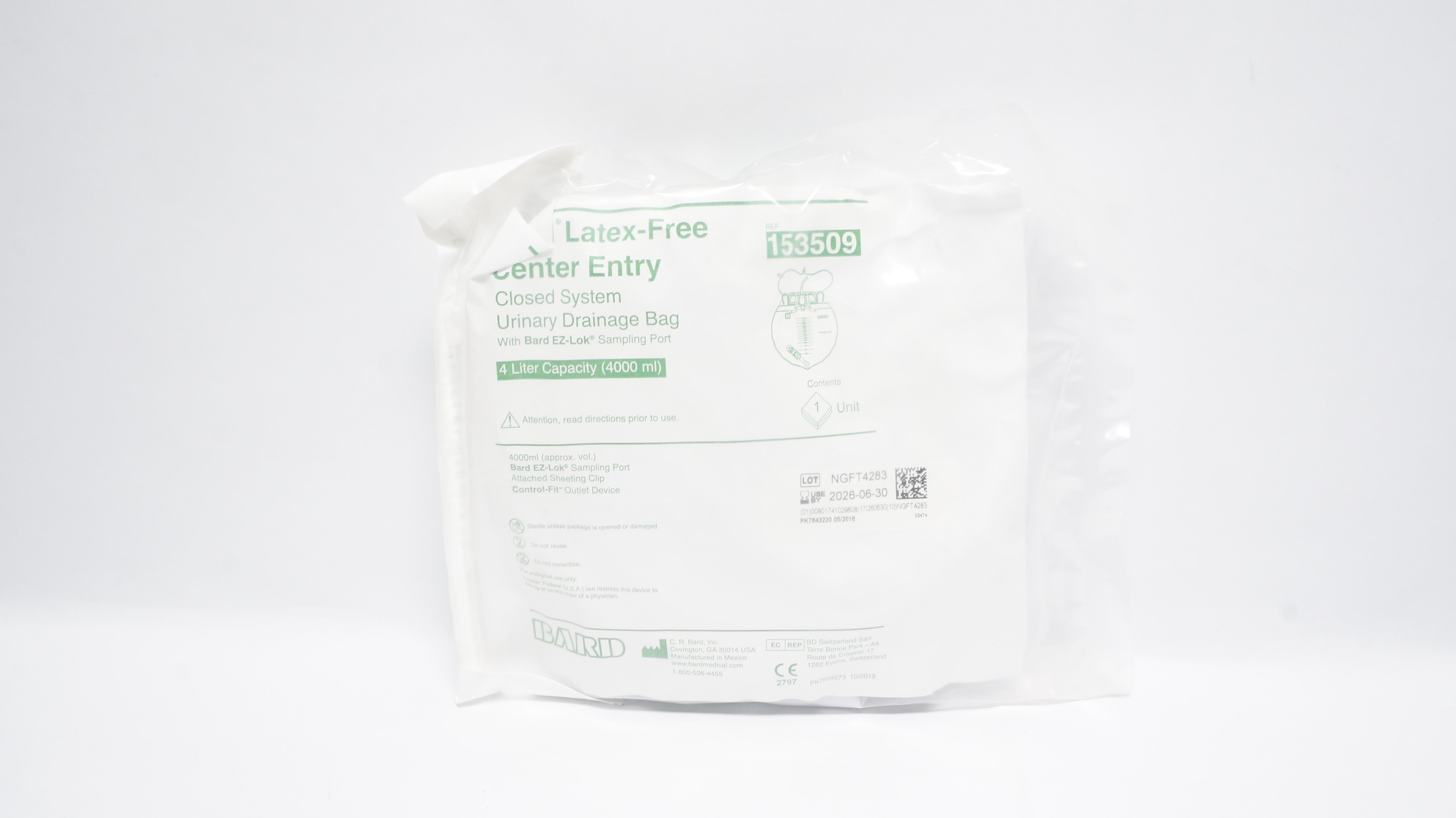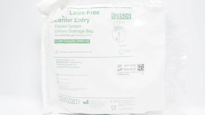 - Bard 153509 Ceneter Entry Closed System Urinary Drainage Bag 4000 ml