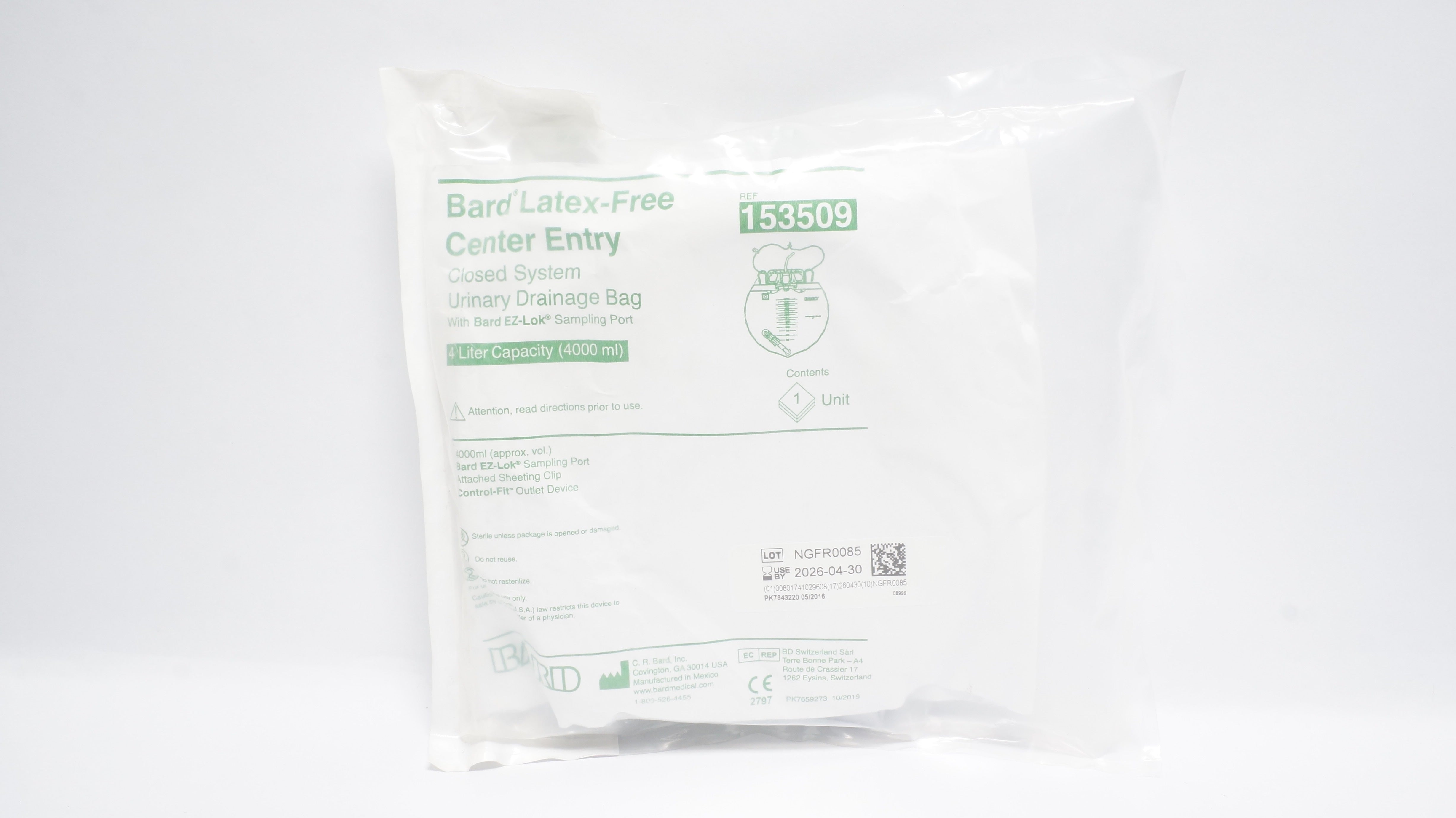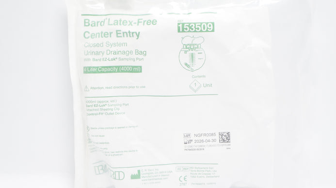 - Bard 153509 Ceneter Entry Closed System Urinary Drainage Bag 4000 ml