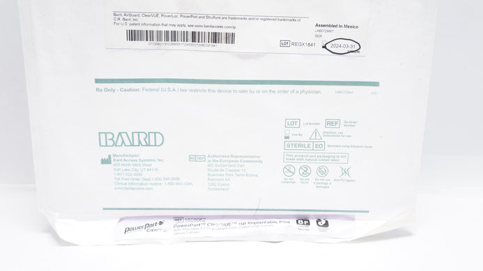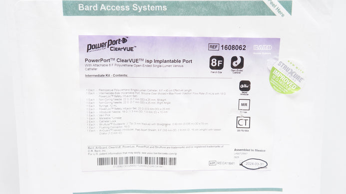 Bard 1608062 PowerPort ClearVue Isp Implantable Port w/Venous Cath. 8F (x)