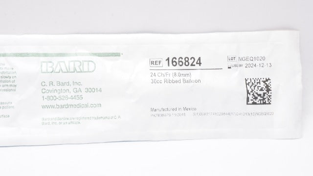 Bard 166824 Bardex All-Silicone Foley Catheter 24Ch/Fr 30 cc Ribbed Balloon