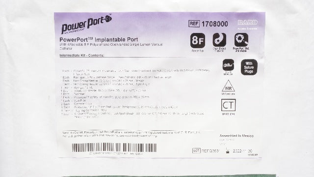 - Bard 1708000 Power Port Implantable Port With Attachable Venous Cath. 8F (x)