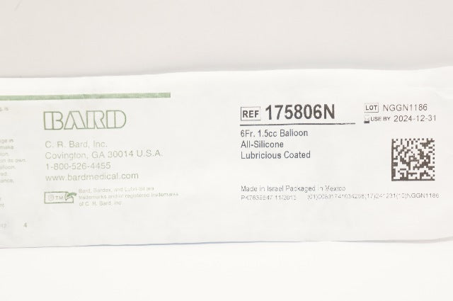 Bard 175806N Lubri-Sil All-Silicone Foley Catheter Lubricious Coated 6Fr. 1.5cc Balloon