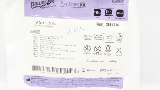 Bard 2651915 Power Loc Safety Infusion Set Port Access Kit 19Ga x 1-1/2 inch x 0.3mL