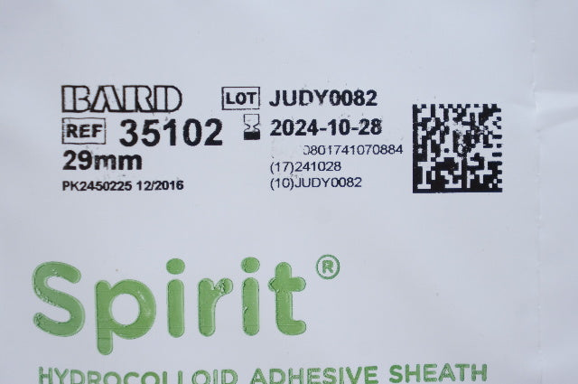 - Bard 35102 Spirit Hydrocolloid Adhesive Sheath 29mm, Medium - Box of 100