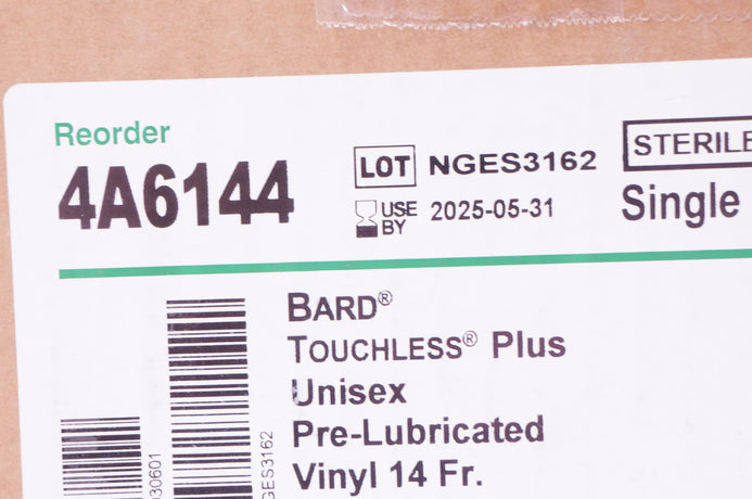 Bard 4A6144 Touchless Plus Unisex Pre-Lubricated Vinyl 14 Fr. Urethral Catheter