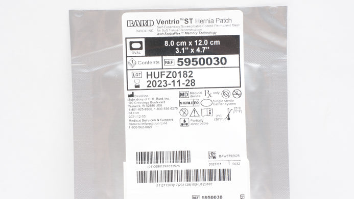 - Bard 5950030 Davol Ventrio ST Hernia Patch Oval 3.1inch x 4.7inch (x)