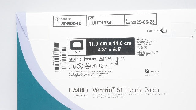 - Bard 5950040 Davol Ventrio ST Hernia Patch, Oval 4.3inch x 5.5inch