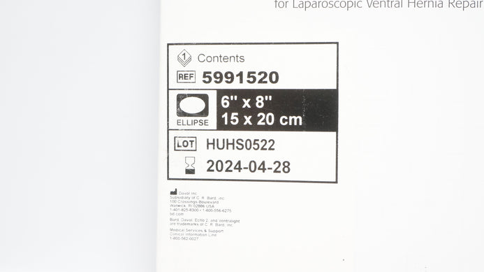 Bard 5991520 Ventralight ST Mesh w/Echo2 Positioning System Ellipse 6 x 8inch