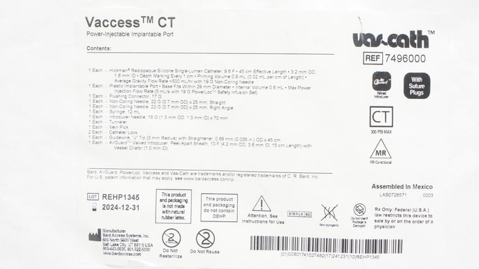 - Bard 7496000 Vaccess CT Power-Injectable Implantable Port (x)