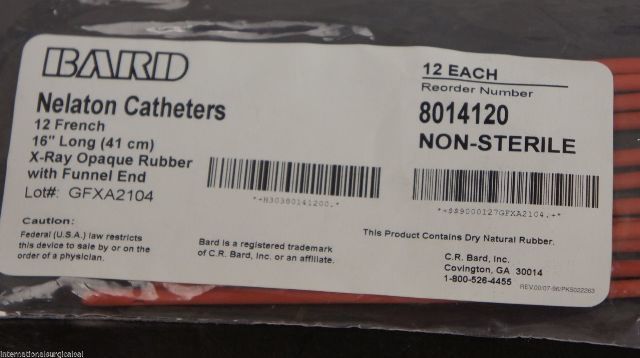 Bard 8014120 Nelaton Caths 12Fr 16” X-Ray Opaque Rubber w/Funnel End ~Pack of 12