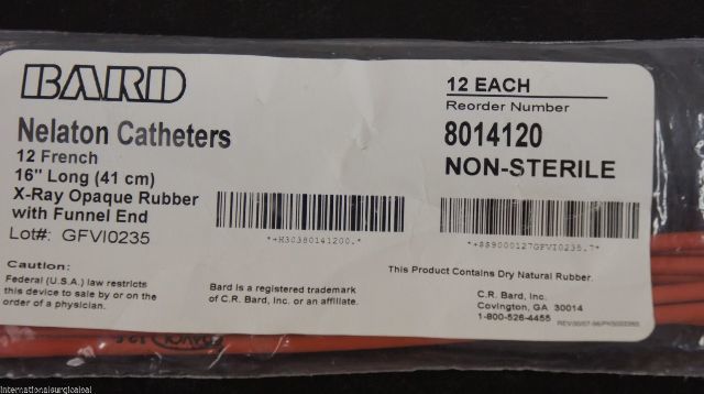 Bard 8014120 Nelaton Caths 12Fr 16” X-Ray Opaque Rubber w/Funnel End ~ Pack of 8