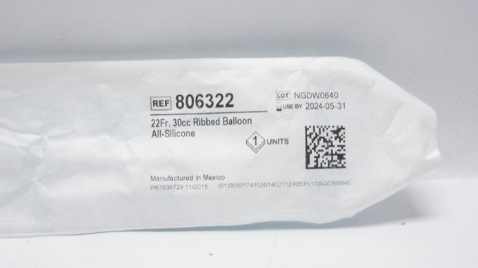 Bard 806322 Bardia Foley Cath. Ribbed Balloon All-Silicone 22Fr 30cc Balloon (x)