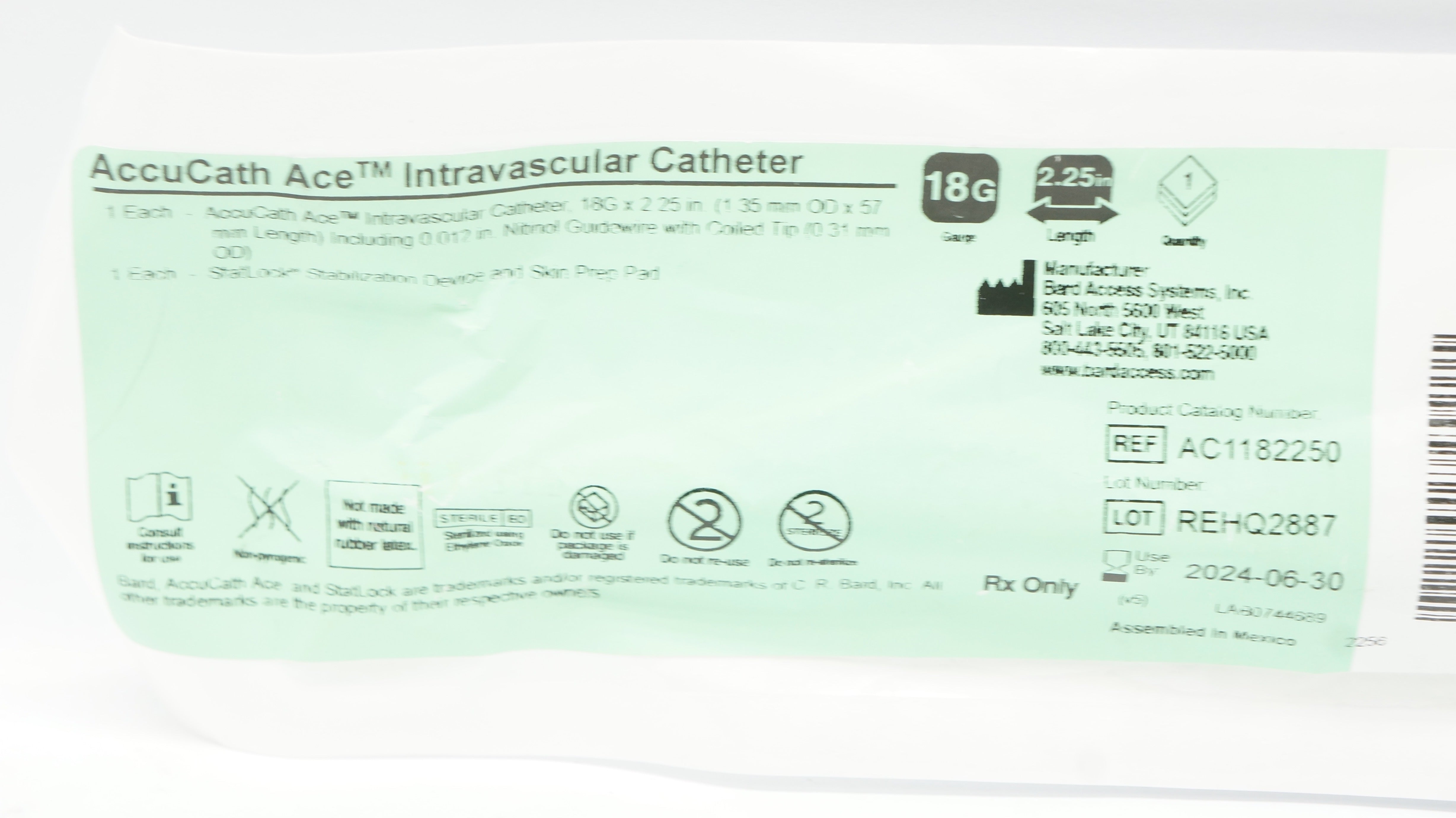- Bard AC1182250 AccuCath Ace Intravascular Catheter 18G (x)