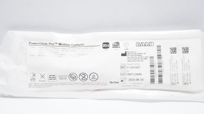 Bard F120100T PowerGlide Pro Midline Catheter w/Reinforced Tip 20G x 3.9inch