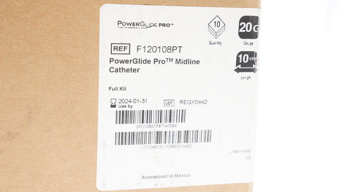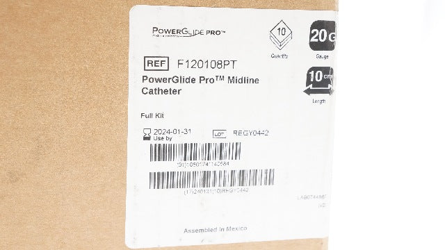Bard F120108PT PowerGlide Pro Midline Cath. 20G x 10cm (x) - Box of 10