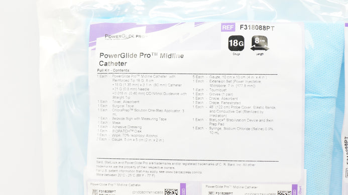 Bard F318088PT Power Glide Pro MIdline Catheter 18G 8cm