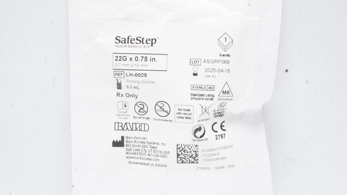 Bard LH-0029 SafeStep Huber Needle Set 22G x 0.75inch, Priming Volume 0.3ml