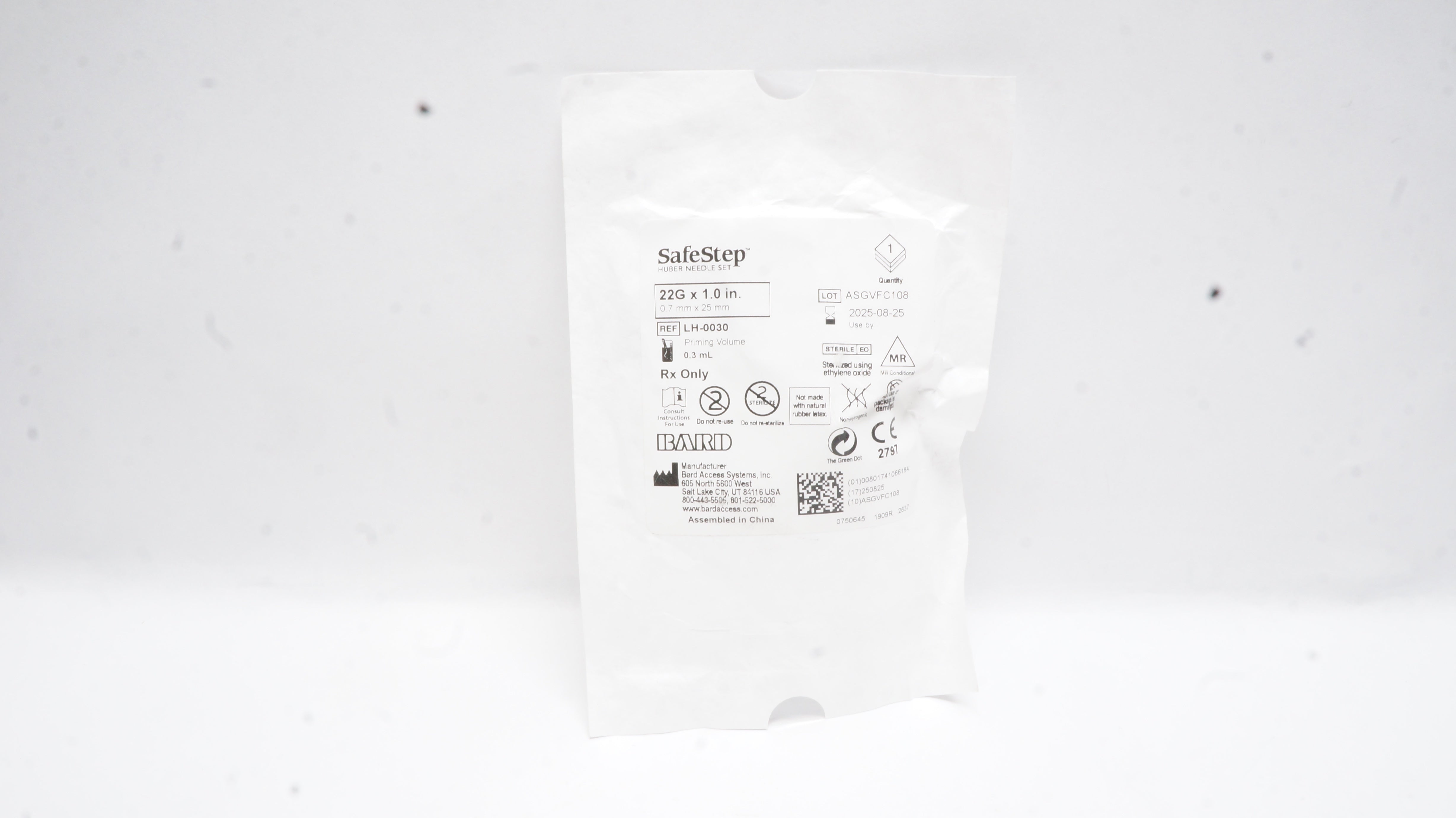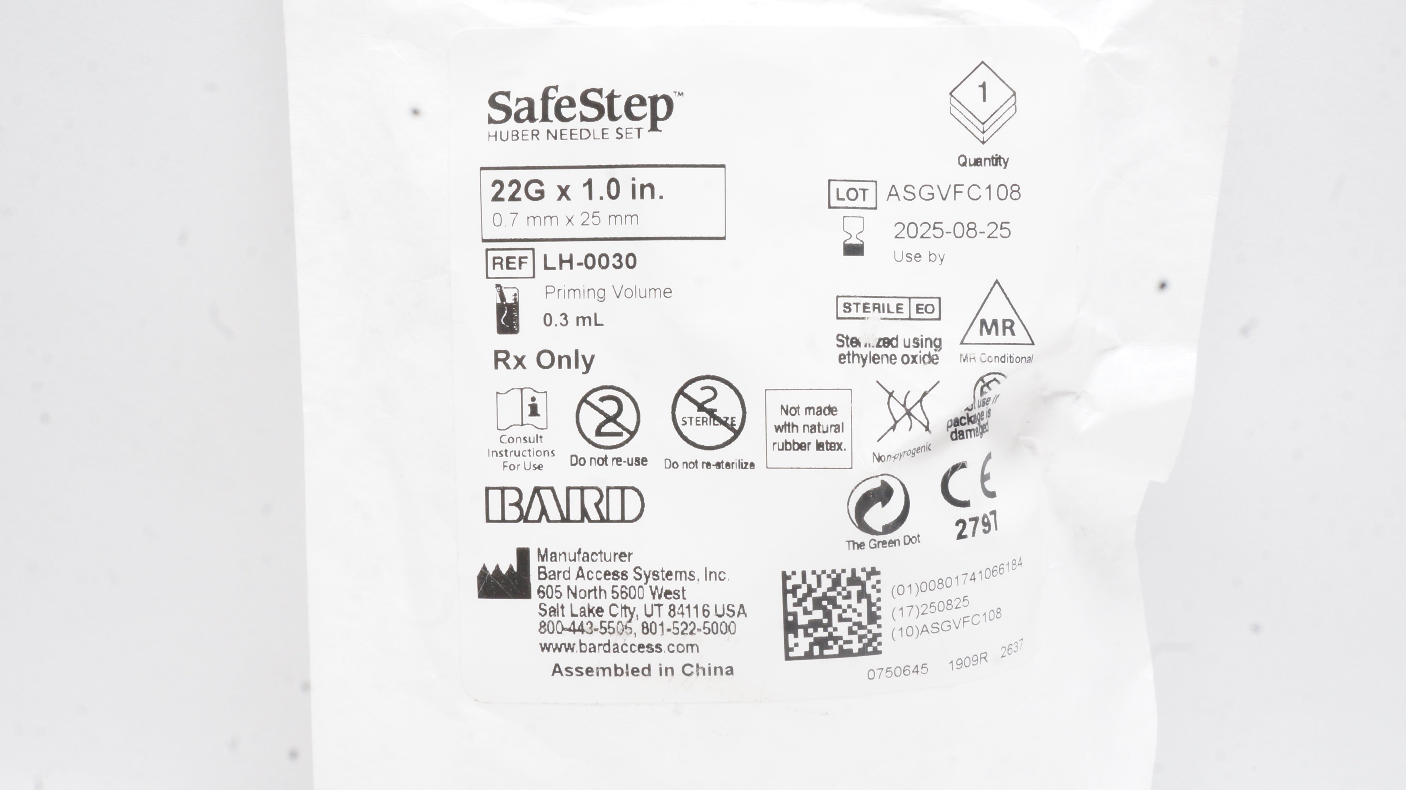 - Bard LH-0030 SafeStep Hber Ndle Set 22G x 1.0inch, Priming Volume 0.3mL
