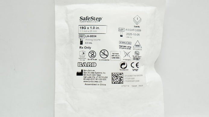 - Bard LH-0034 SafeStep Huber Ndle Set 19G x 1.0inch Priming Volume 0.3mL