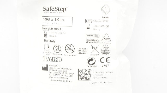 - Bard LH-0034 SafeStep Huber Ndle Set 19G x 1.0inch Priming Volume 0.3mL (x)