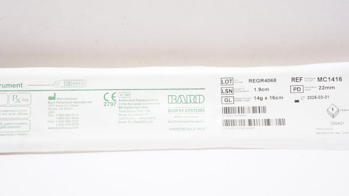 Bard MC1416 MAX-CORE Disposable Core Biopsy Instrument 14G x 16cm
