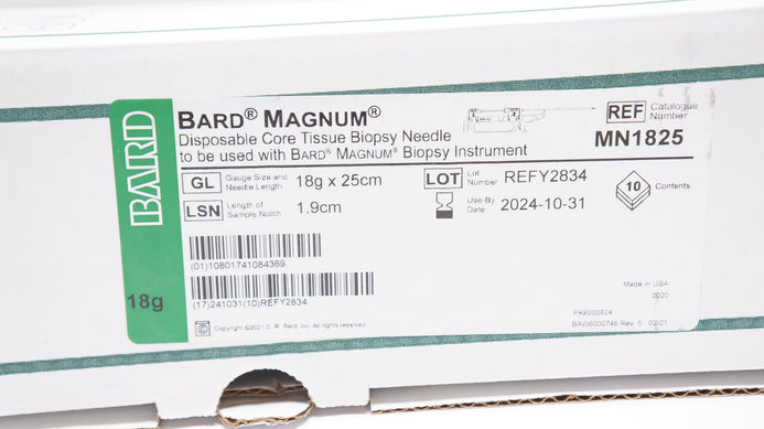 Bard MN1825 Magnum Disposable Core Tissue Biopsy Ndle 18g x 25cm - Box of 10