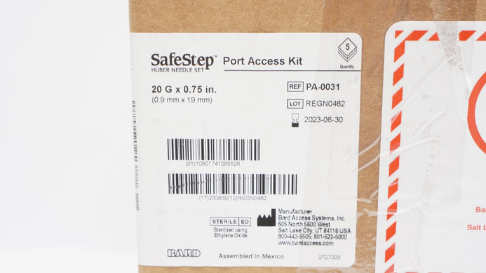 - Bard PA-0031 SafeStep Huber Needle Set,Port Access Kit 20Gx 0.75In-Box of 5(x)