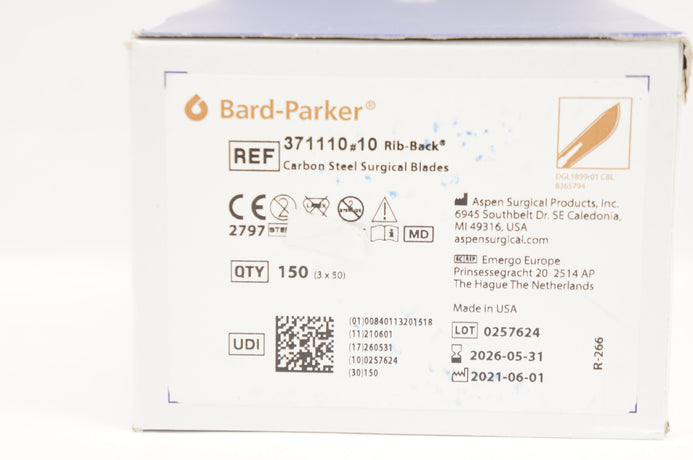 - Bard-Parker 371110 Aspen Surgical Rib-Back Surgical Blades #10 - Box of 150