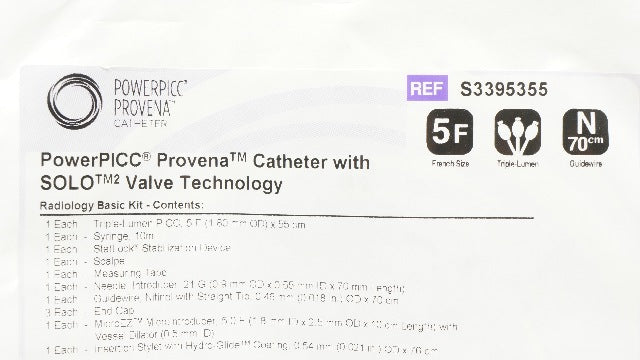 - Bard S3395355 PowerPicc Provena Cath. w/SOLO Valve Technology 5F x 70cm (x)