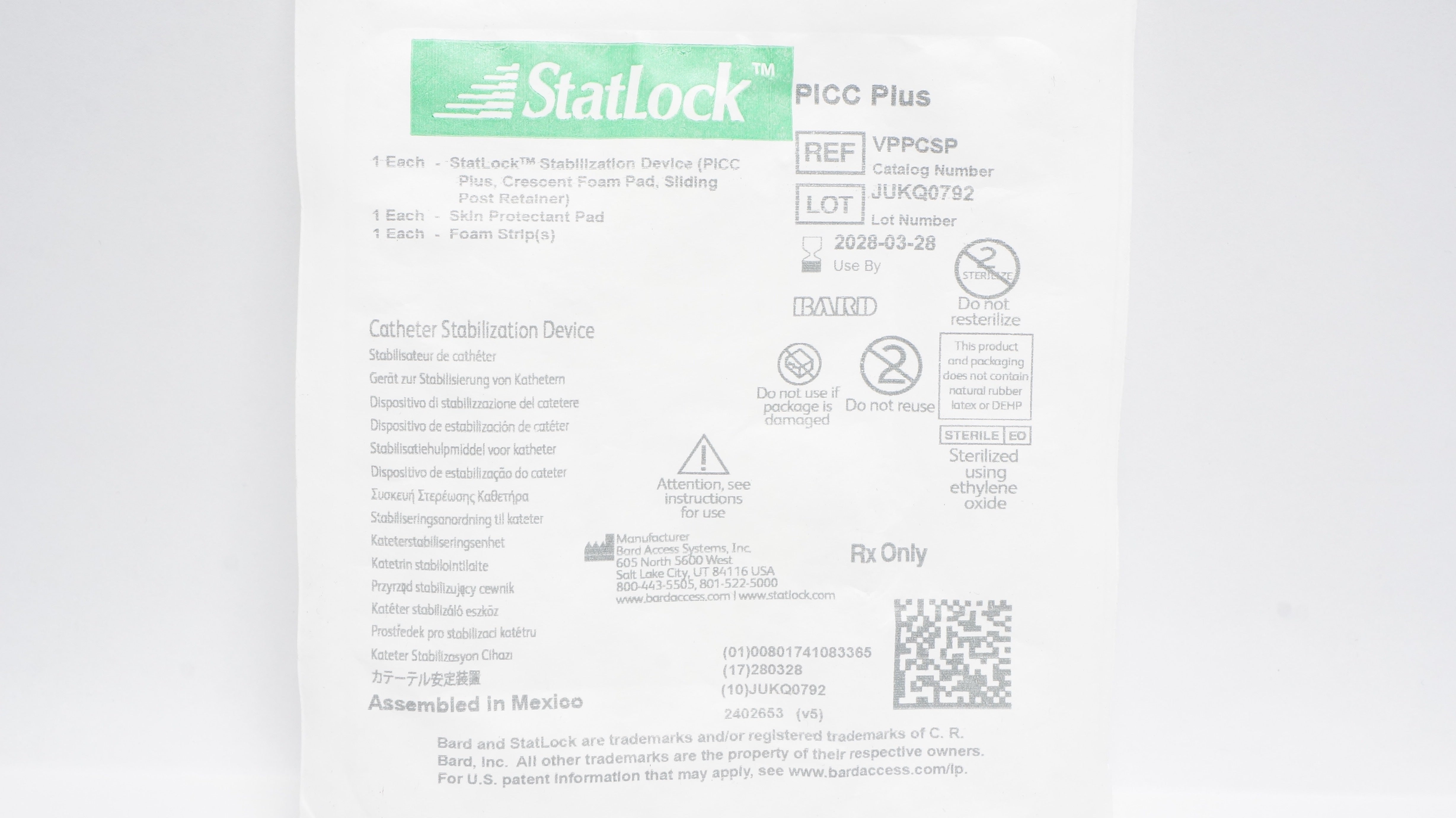 - Bard VPPCSP PICC Plus StatLock Cath. Stabilization Device