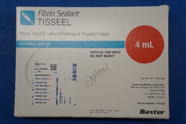 - Baxter 1501262 Fibrin Sealant Tisseel Vapor Heated Pre-filled Syringe 4mL (x)
