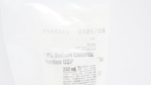 - Baxter 2B1322 0.9% Sodium Chloride Injection USP, 250mL