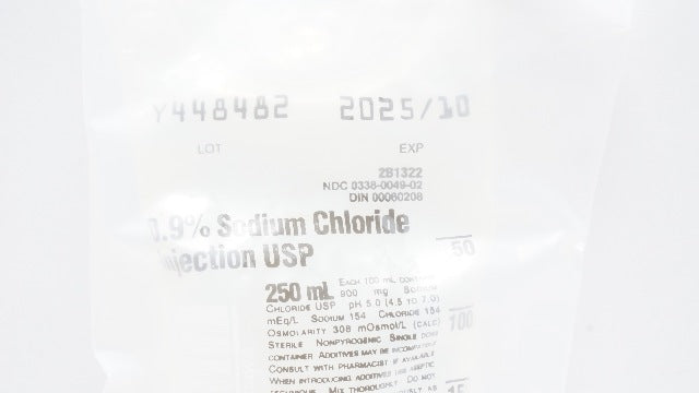 - Baxter 2B1322 0.9% Sodium Chloride Injection USP, 250mL