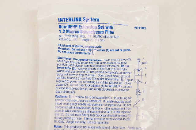 - Baxter 2C1103 INTERLINK System Non-DEHP Extension Set, 5.1mL x 21inch