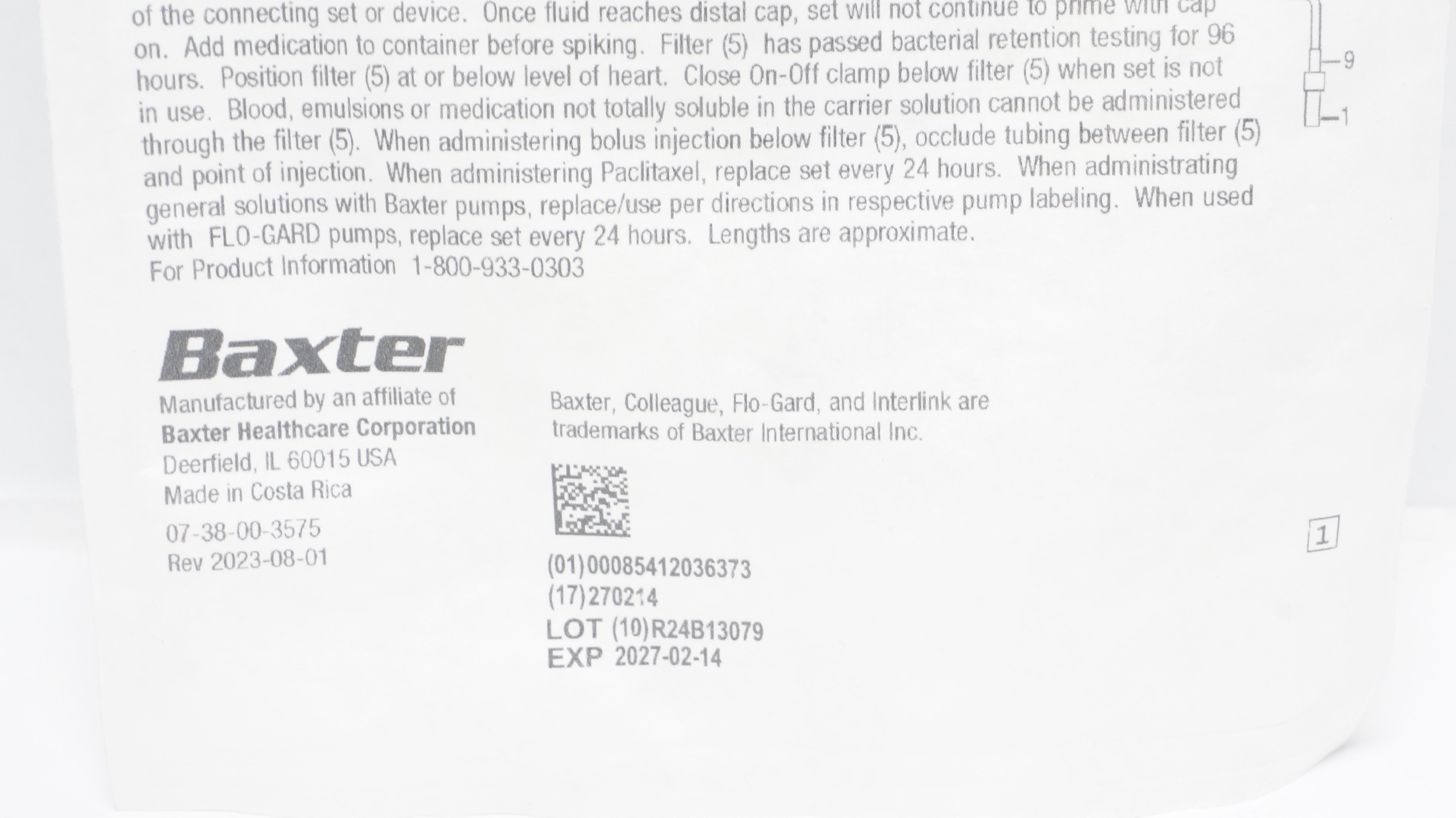 - Baxter 2C7557 Interlink System Vented Paclitaxel Set 107inch 10Drops/mL