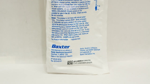 Baxter 2C7564 Interlink System Buretrol Solution Set 105inch x 150mL Burtte Drip Chamber Filter Valve 3 Injection Sites Male Luer Lock Adapter with Retractable Collar 60 drops/ml