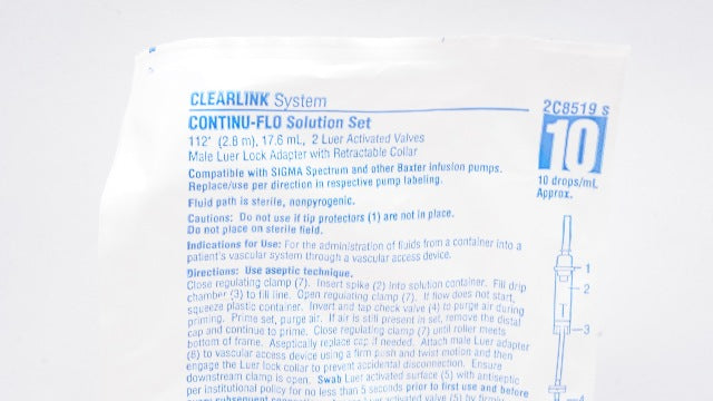- Baxter 2C8519S Clearlink Continu-Flo Solution Set 10 drops/mL, 112inch x 17.6mL