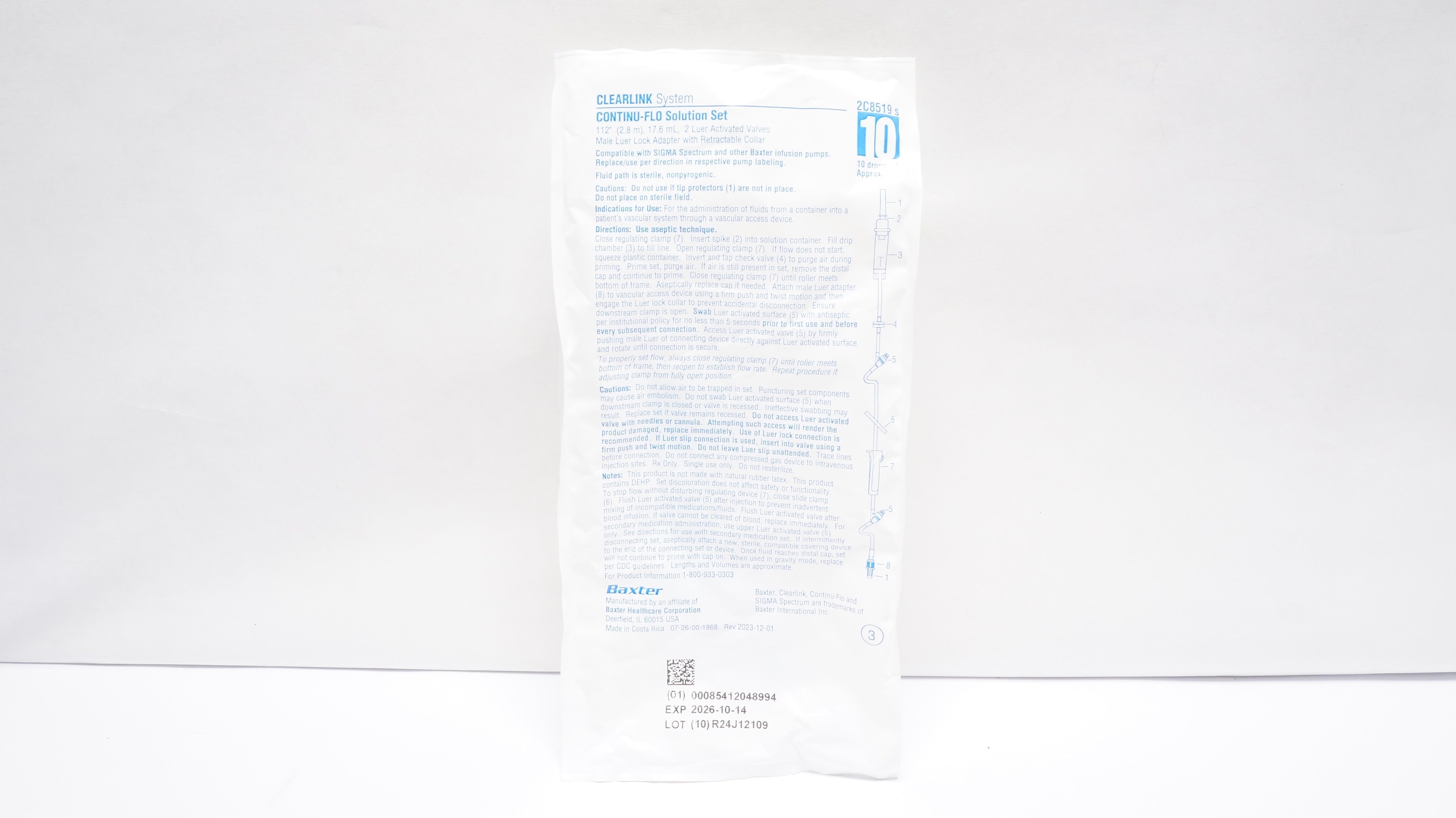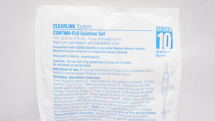 - Baxter 2C8519S Clearlink Continu-Flo Solution Set 10 drops/mL, 112inch x 17.6mL