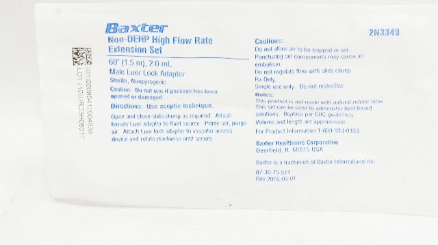 - Baxter 2N3349 Non-DEHP High Flow Rate Extension Set 60inch x 2.0mL Case of 50
