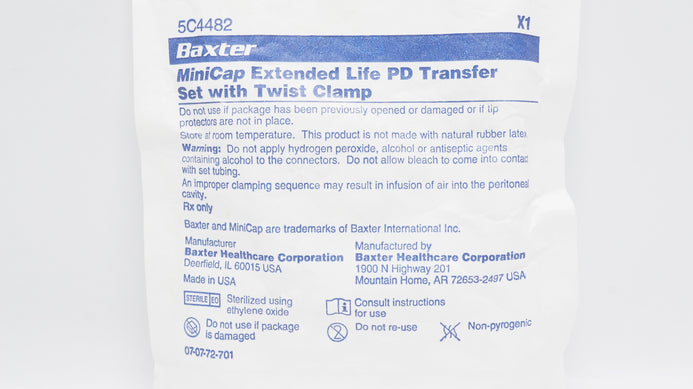 - Baxter 5C4482 MiniCap Extended Life PD Transfer Set with Twist Clamp (x)
