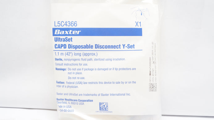 - Baxter L5C4366 UltraSet CAPD Disposable Disconnect Y-Set 42inch Long