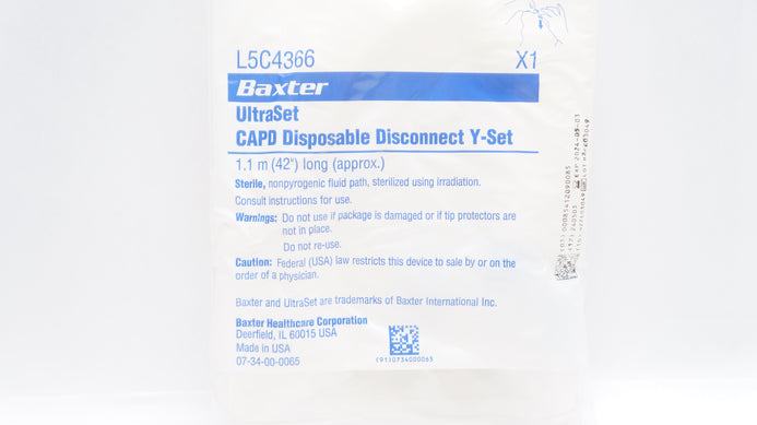 - Baxter L5C4366 UltraSet CAPD Disposable Disconnect Y-Set 42inch Long (x)