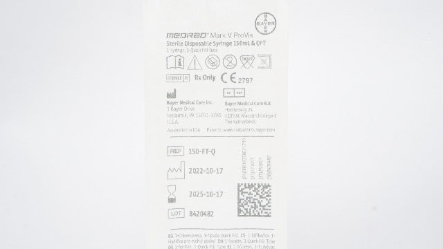 - Bayer 150-FT-Q MEDRAD Mark V ProVis Sterile Disposable Syringe 150ml & QFT