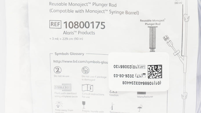 - BD 10800175 PCA Administration Kit Reusable Monoject Plunger Rod 3 ml x 90 inch